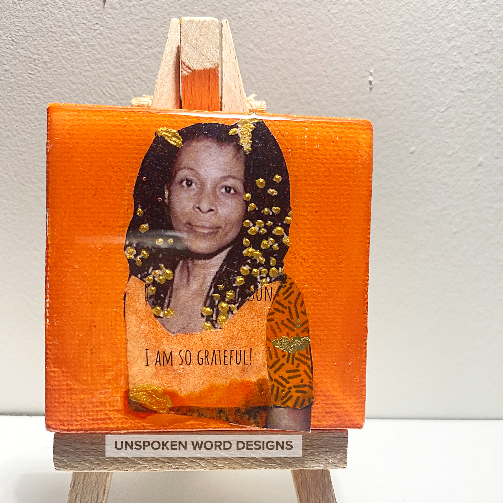 Auntie Assata proudly showcases the iconography of the influential political activist Assata Shakur. This 2.5x2.5 mini monochromatic collage offers a fitting tribute for someone whose words and work have inspired so many. Use this collage to bring an iconic message of transformation and justice to any space.