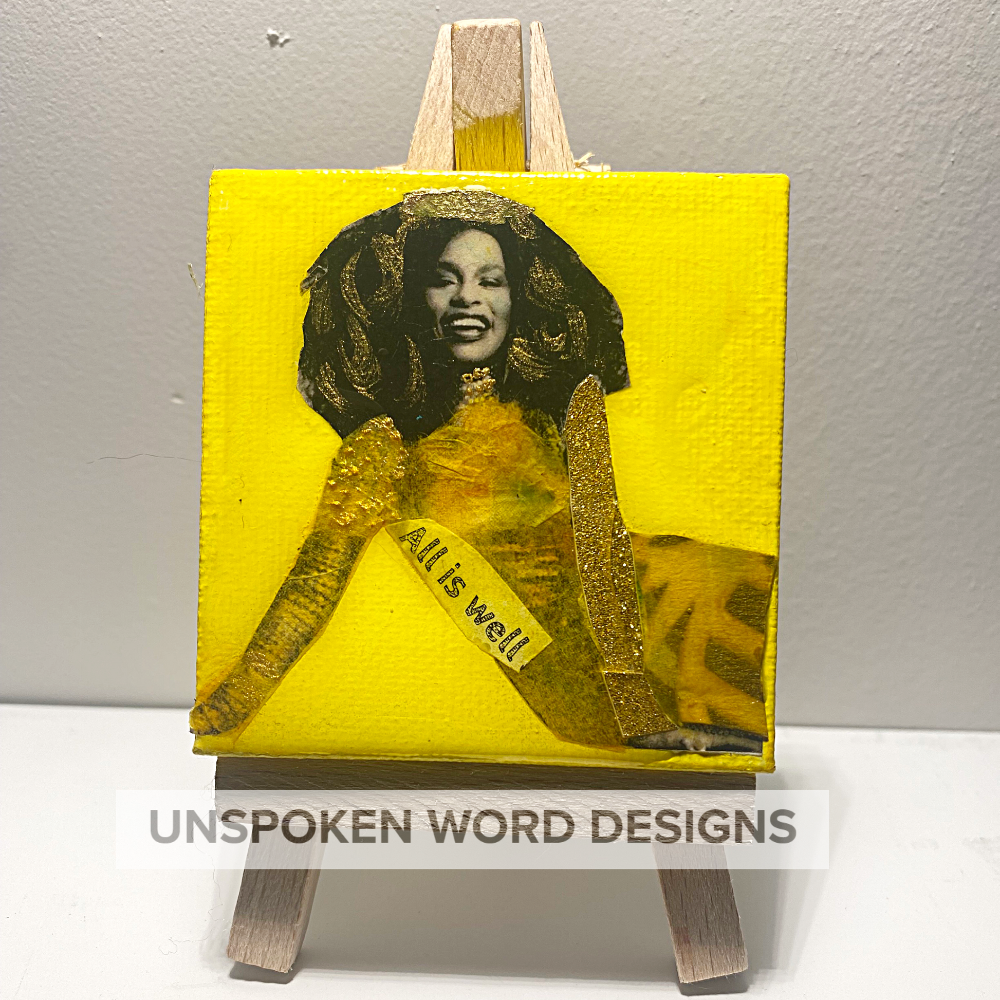 Introducing Auntie Chaka, a 2.5x2.5 mini monochromatic collage featuring the iconic singer Chaka Khan. Show off your favorite artist with this unique collectible, expertly created using high-quality printing methods for a lasting finish and long-term preservation. Perfect for both casual and serious collectors alike!