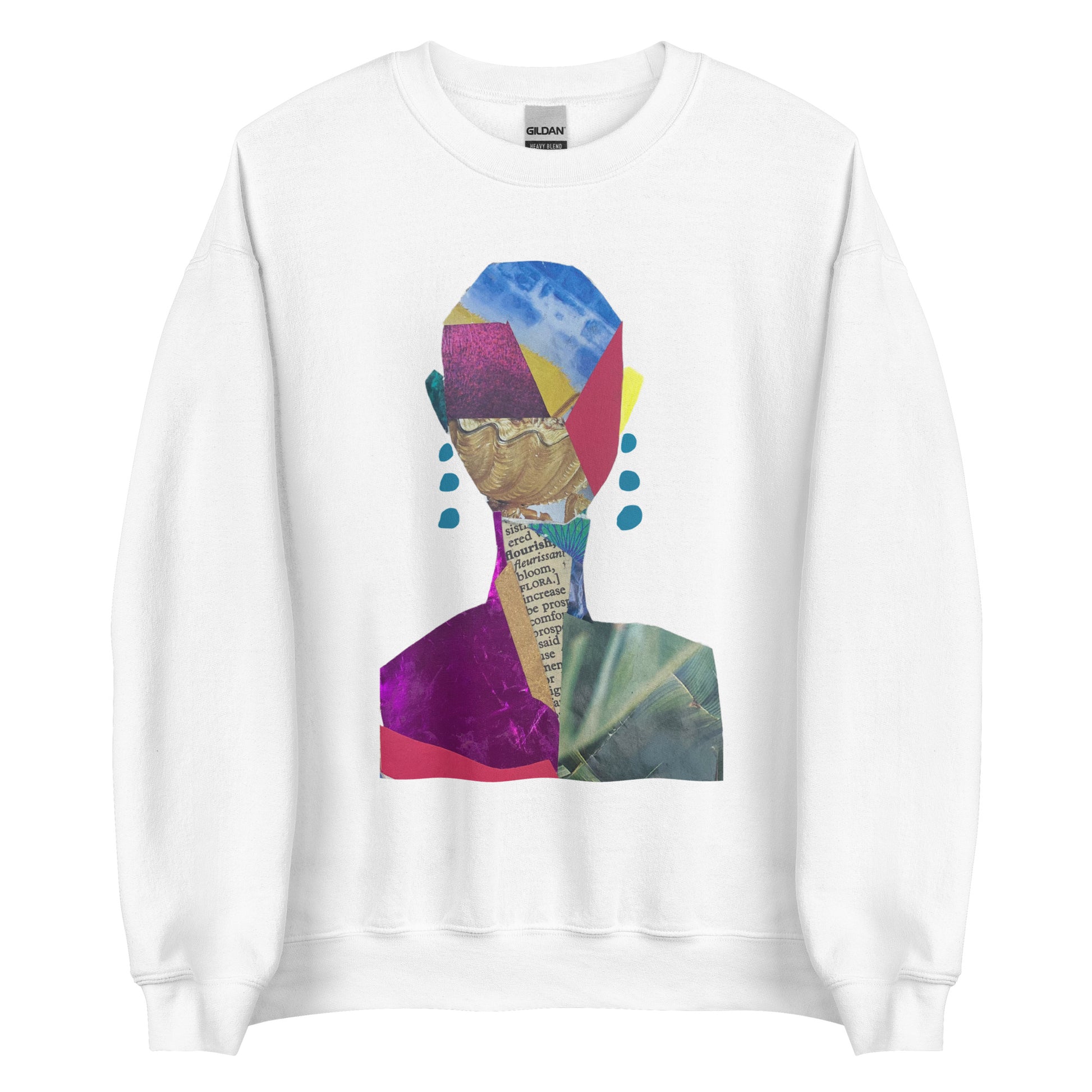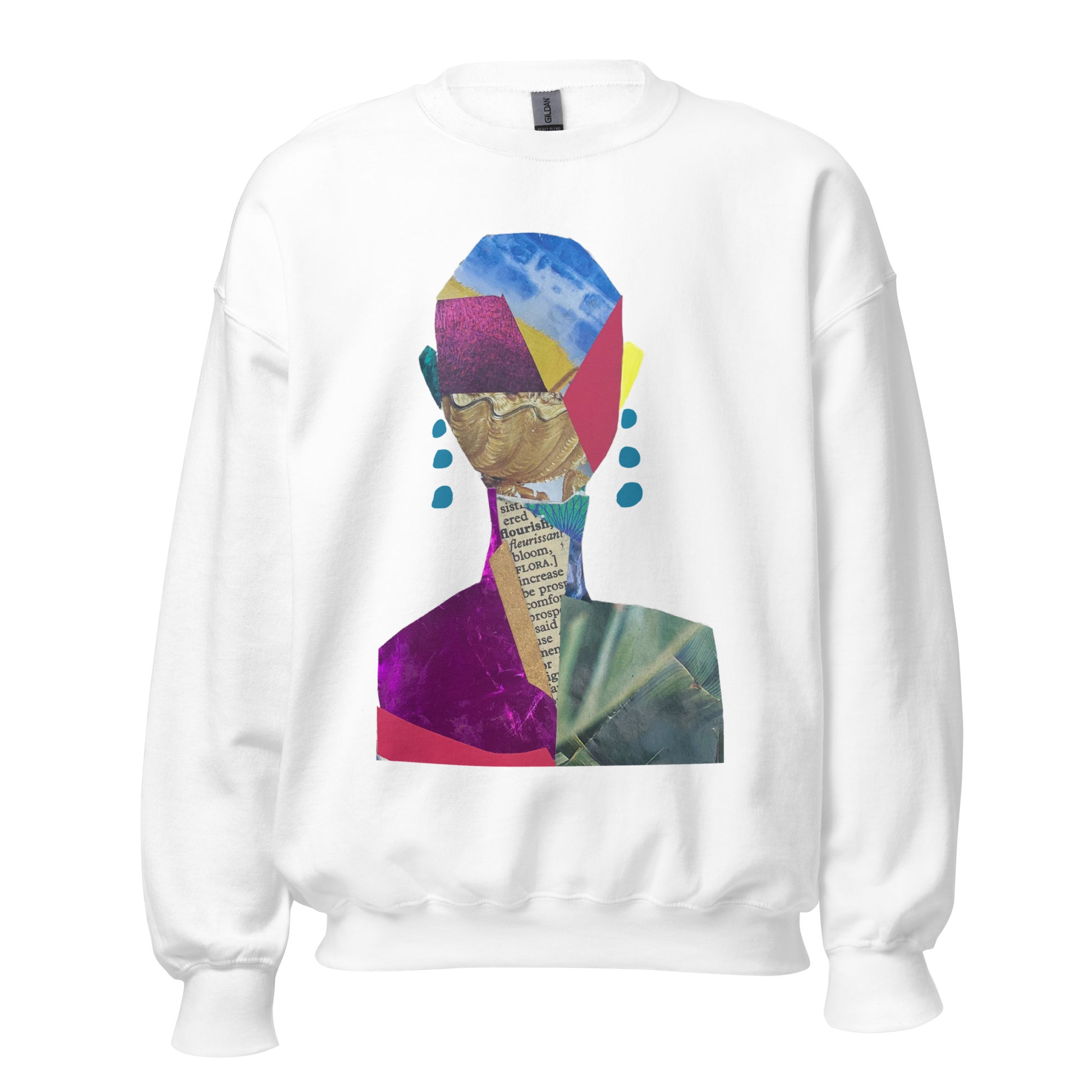 This sweatshirt features Day 65 collage, from my Collage 365 project.