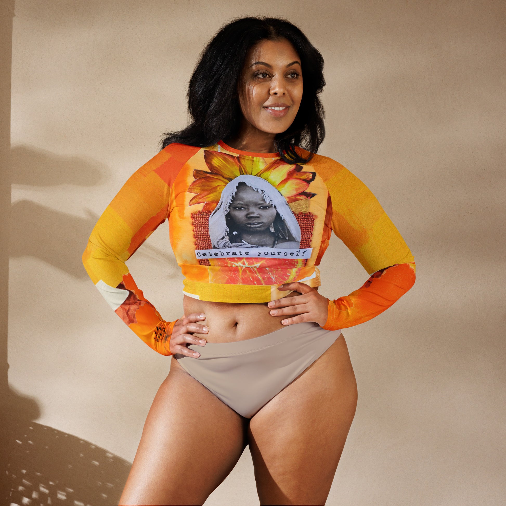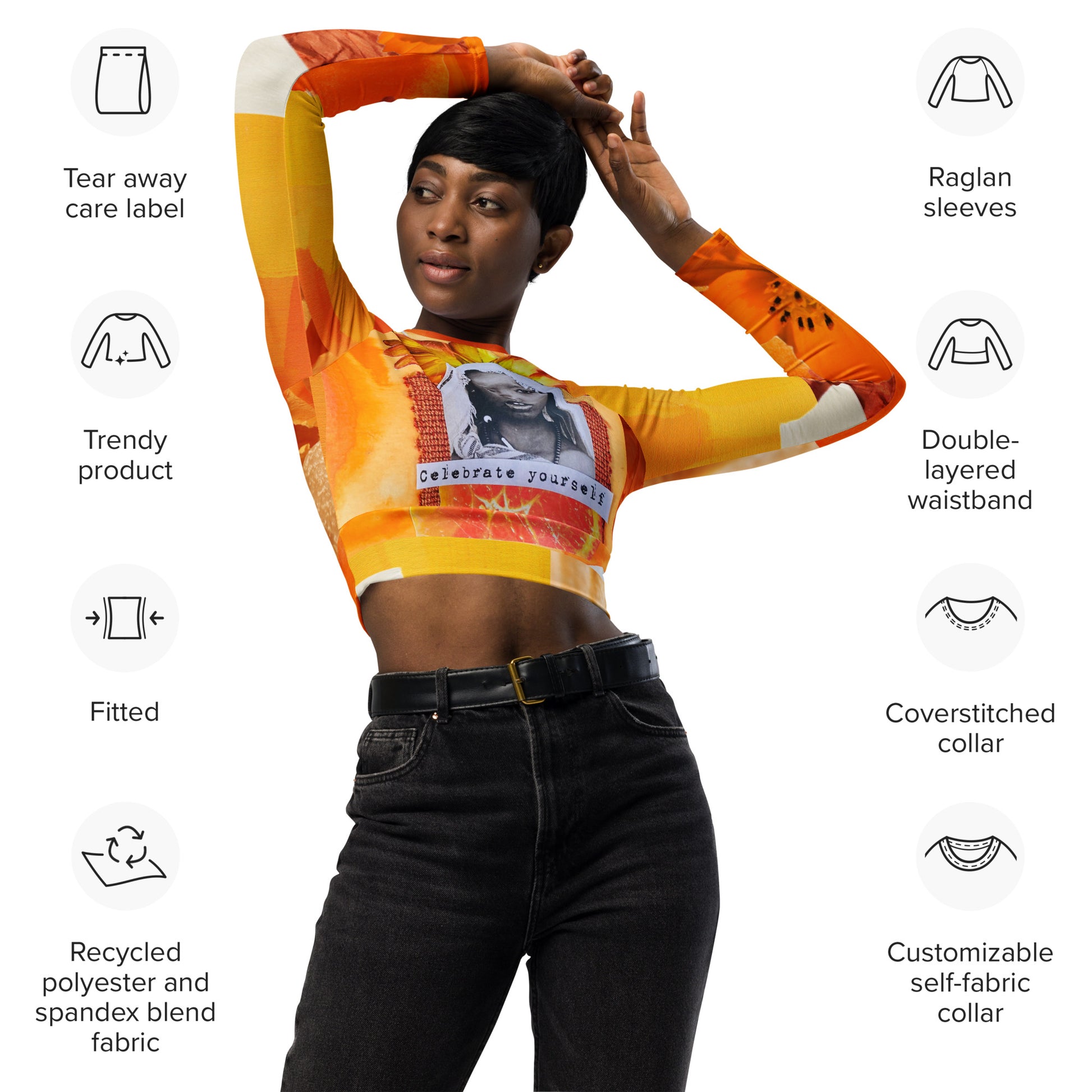 Look stylish and stay comfortable in this multifunctional Long Sleeve Crop Top. The perfect item for any occasion, whether it's for fitness, swimwear, or streetwear, it won't let you down. Featuring artwork from my Collage 365 collection, you can make a statement and look great too.