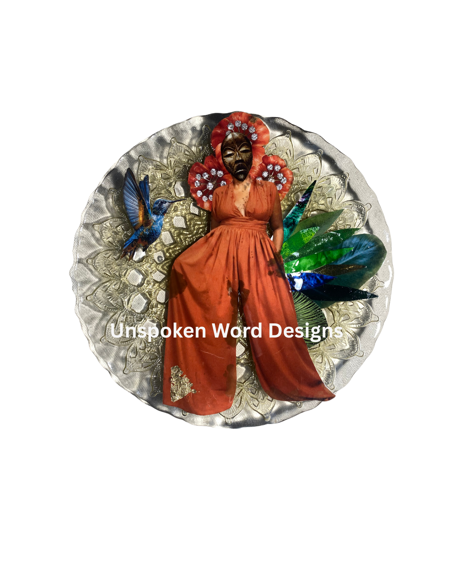 This unique 4x5-inch mixed media collage plate is a one-of-a-kind art piece, expertly crafted to bring a distinctive touch to your space. Designed for easy display, it includes a wall hanger, allowing you to showcase its intricate layers and textures effortlessly. Perfect for collectors and art enthusiasts seeking a compact yet impactful decorative element.
