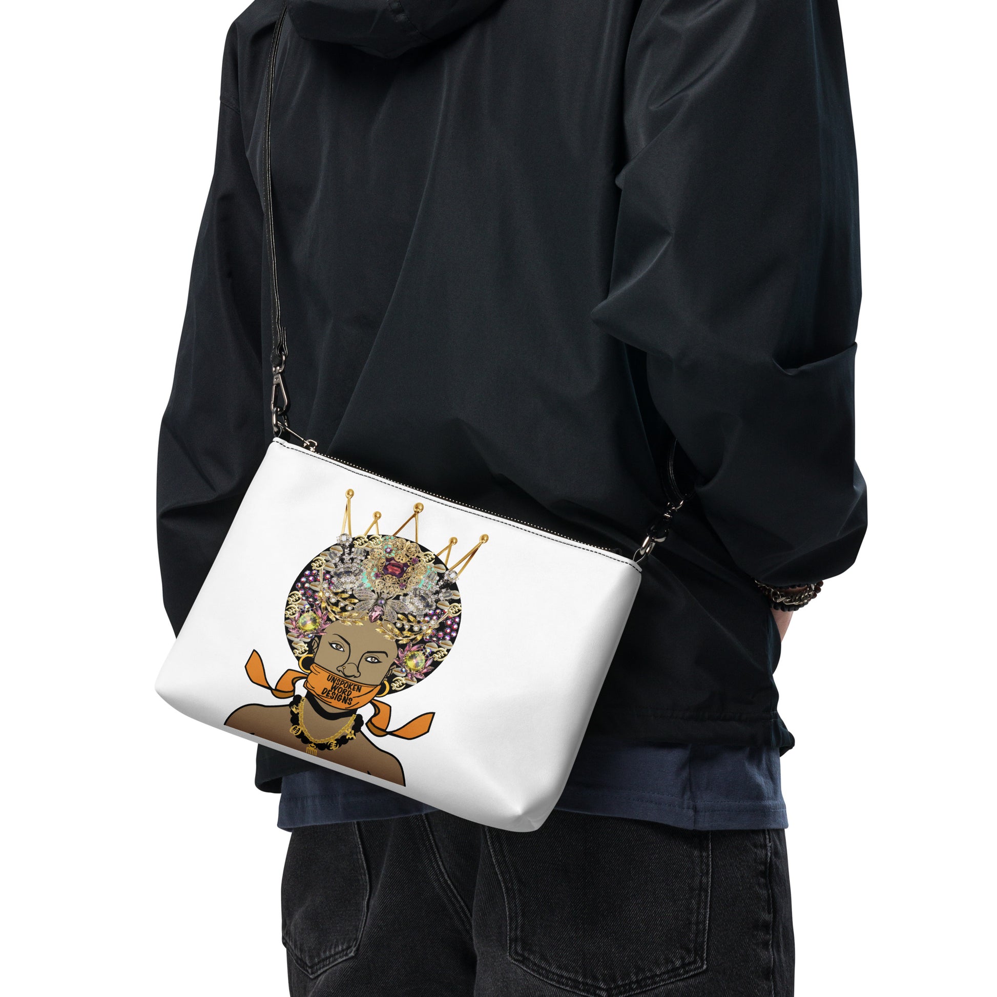 Carry your essentials in style with the Nzinga Crossbody Bag. This unisex bag is designed with the Nzinga logo and provides a convenient way to transport all your items. The adjustable strap lets you customize the fit to your comfort and its stylish design makes it the perfect accessory for any outfit.