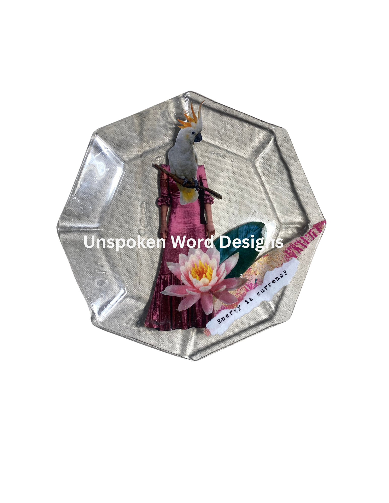 This unique 3x3 mini plate titled "SHEro" features a mixed media collage, expertly crafted to create a one-of-a-kind piece. Its compact size makes it a versatile addition to any collection, showcasing intricate layers and textures that highlight artistic skill and creativity. Perfect for collectors and art enthusiasts seeking a distinctive statement piece.