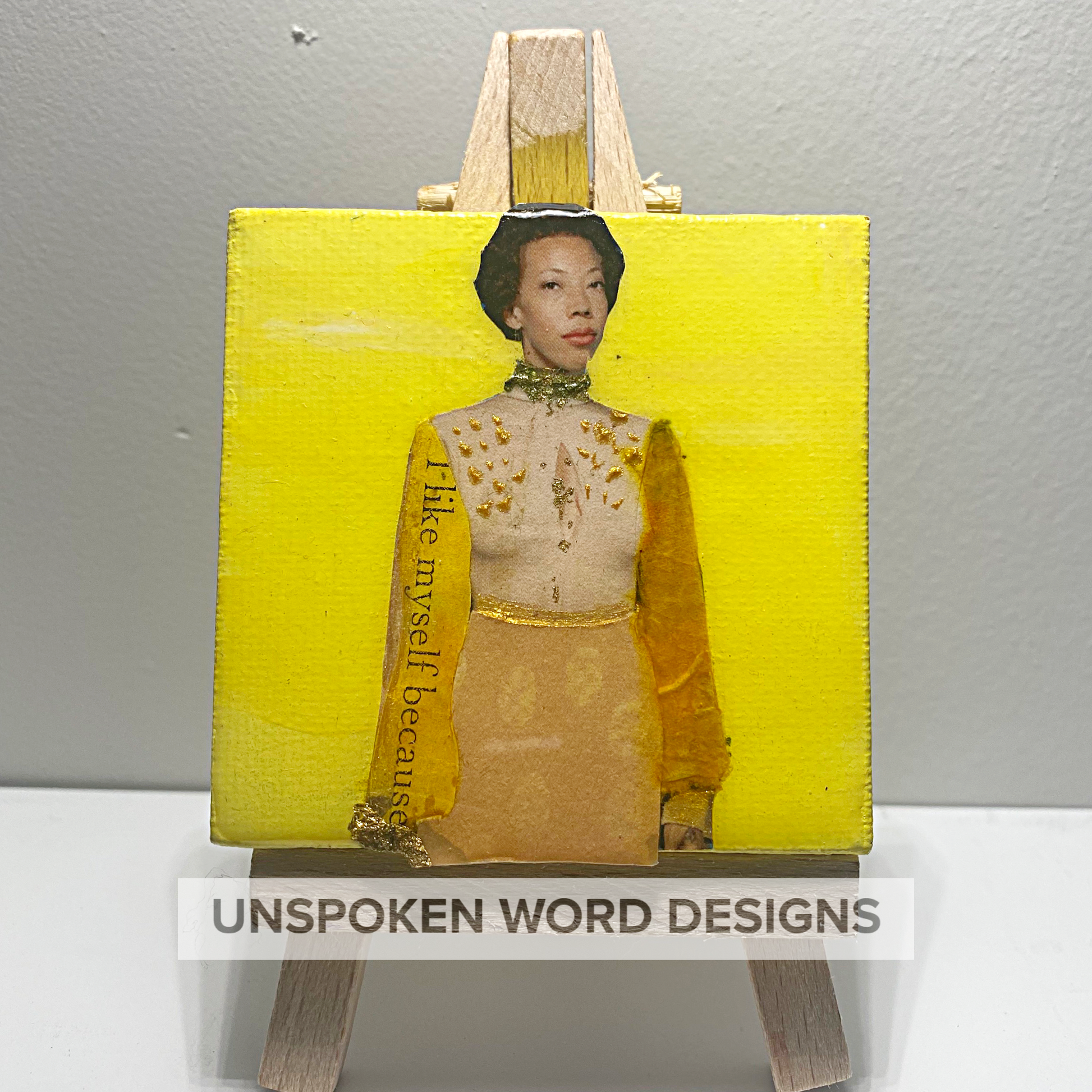Sister Amy, a 2.5x2.5 mini monochromatic collage featuring the work of artist Amy Sherald. Add a sophisticated touch to any interior while commemorating a renowned artist.
