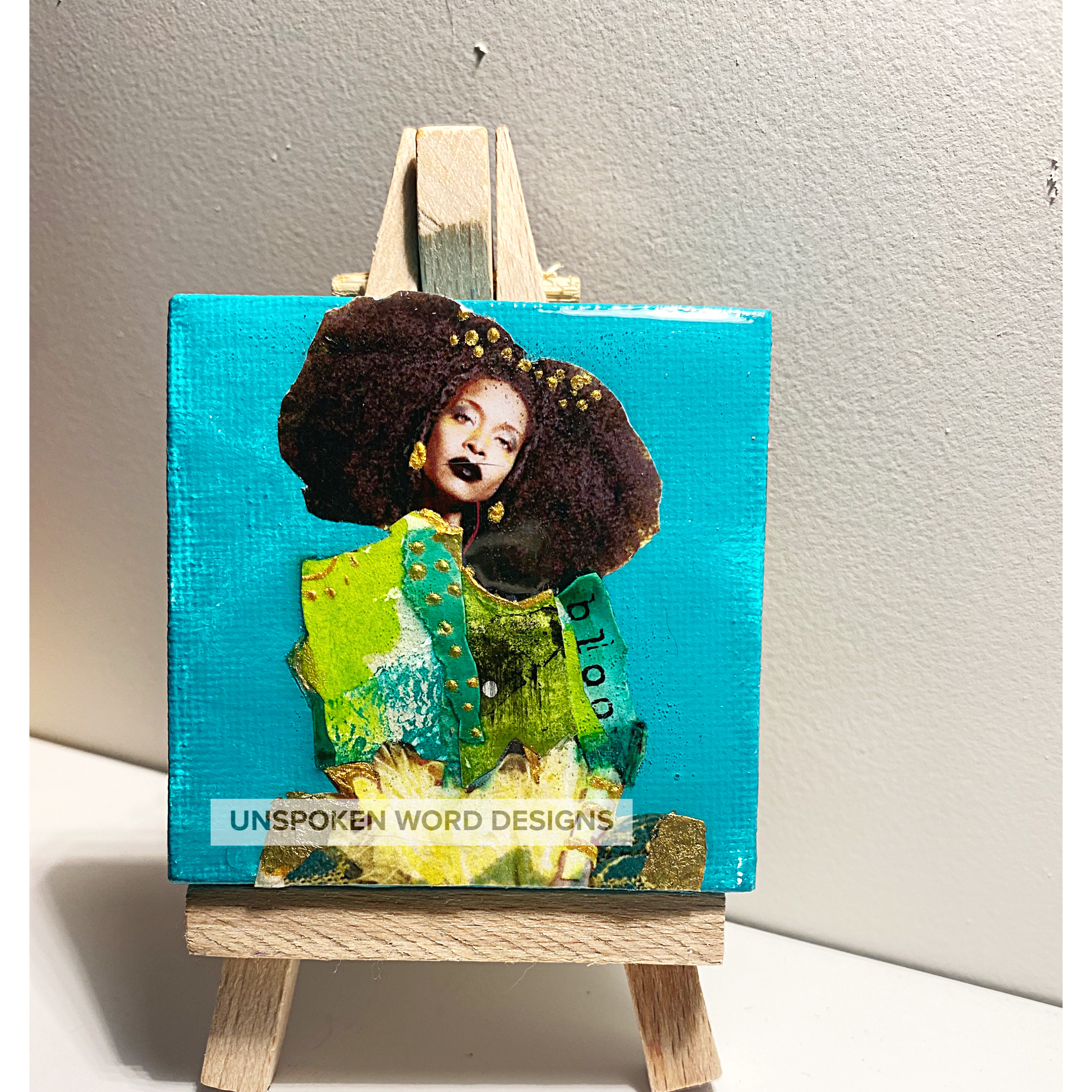 Introducing Sister Erykah, a 2.5x2.5 mini monochromatic collage of the iconic singer, songwriter, and producer Erykah Badu. My Pisces sister! This piece of art celebrating her is an excellent way to bring her unique style to any living space.