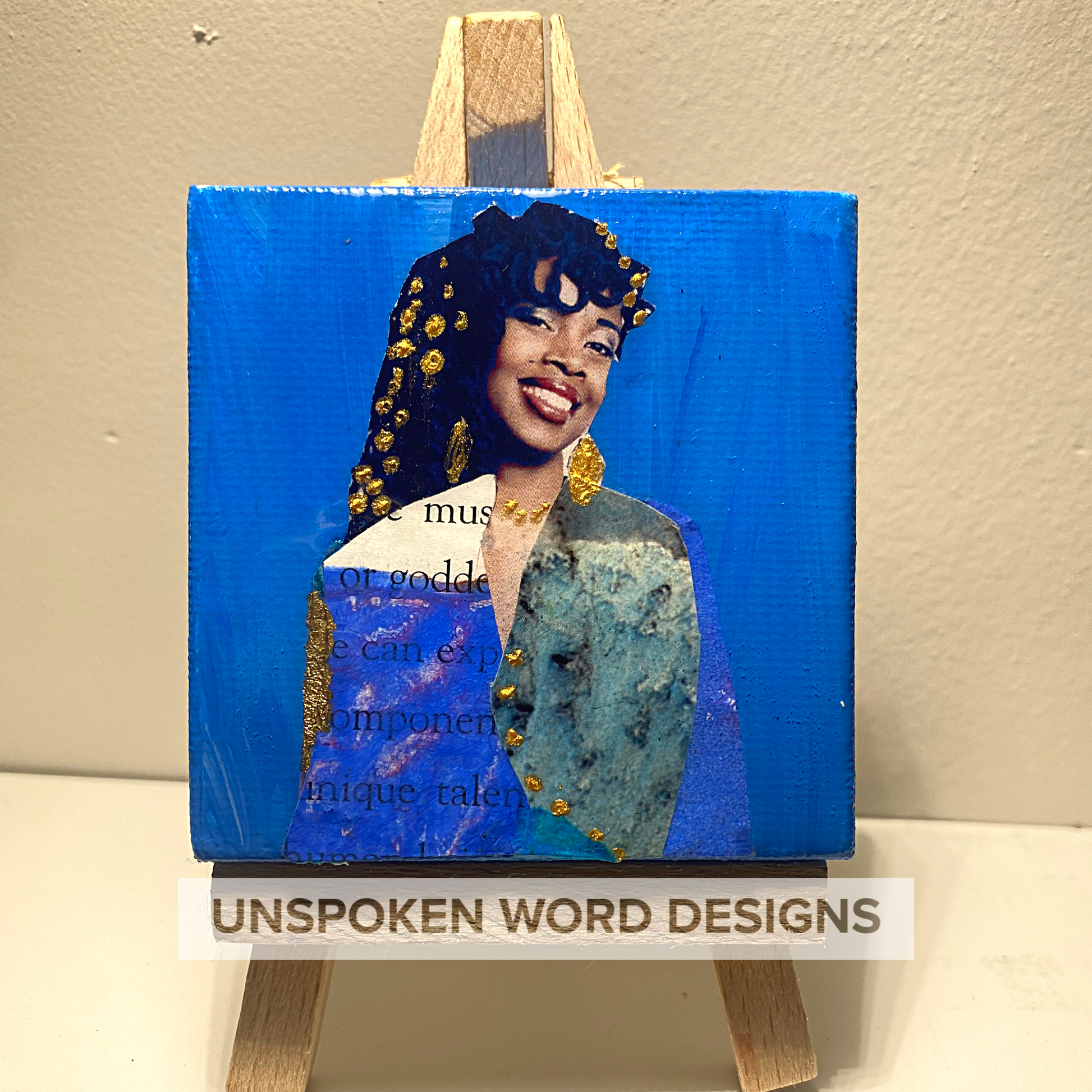 Sister Tamara is a 2.5x2.5 mini monochromatic collage featuring one of my absolute favorite artists, Tamara Natalie Madden. The piece is the perfect addition to your home or office, offering a beautiful blend of art and sophistication.