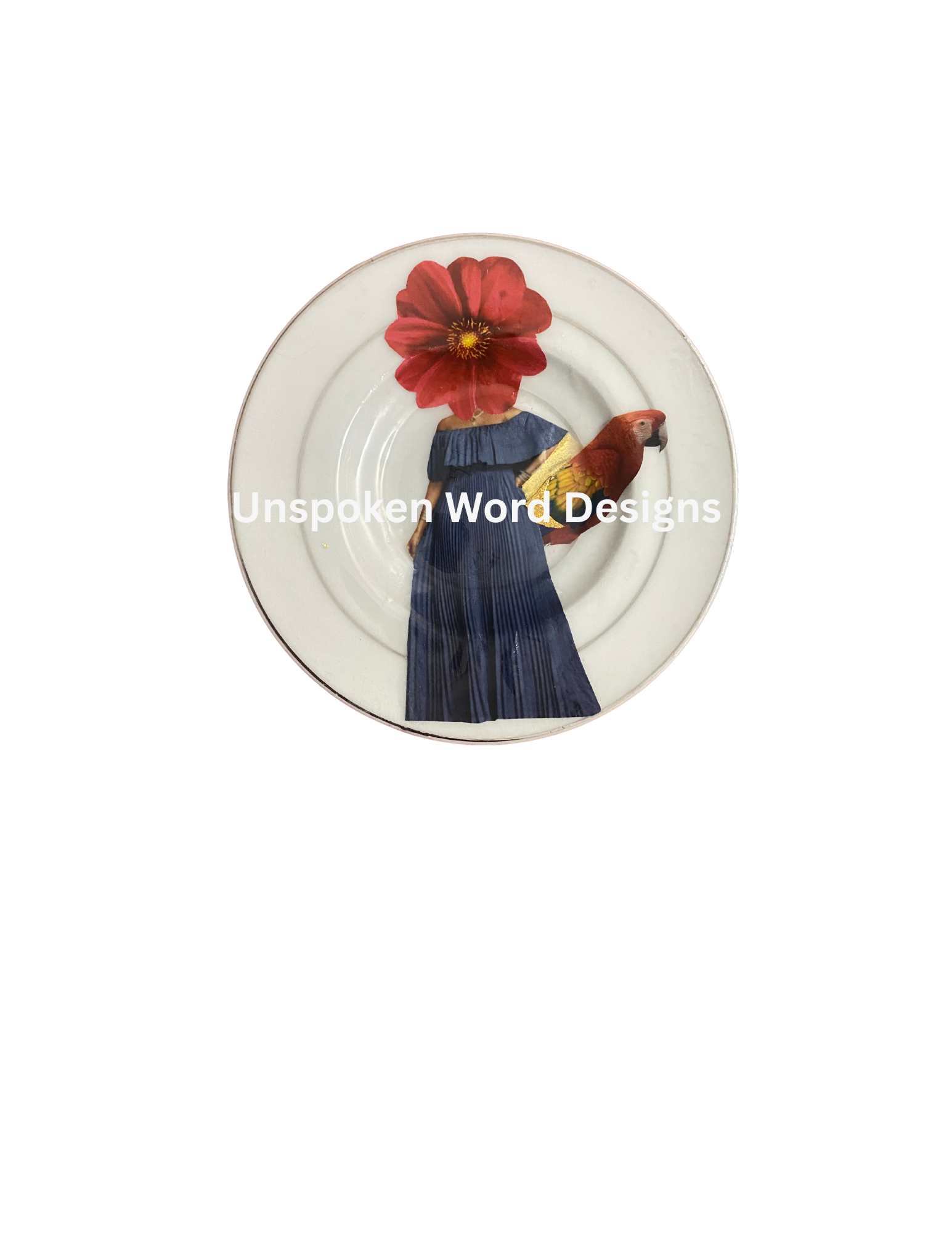 This unique 2x3 mixed-media collage mini plate, titled "Still Exploring," offers a distinctive piece of art that combines texture and color in a compact form. Each plate is one of a kind, making it a special addition to any collection. Designed for convenience, it includes a hanger for easy wall display or can be showcased on a stand, blending artistic expression with practical presentation.